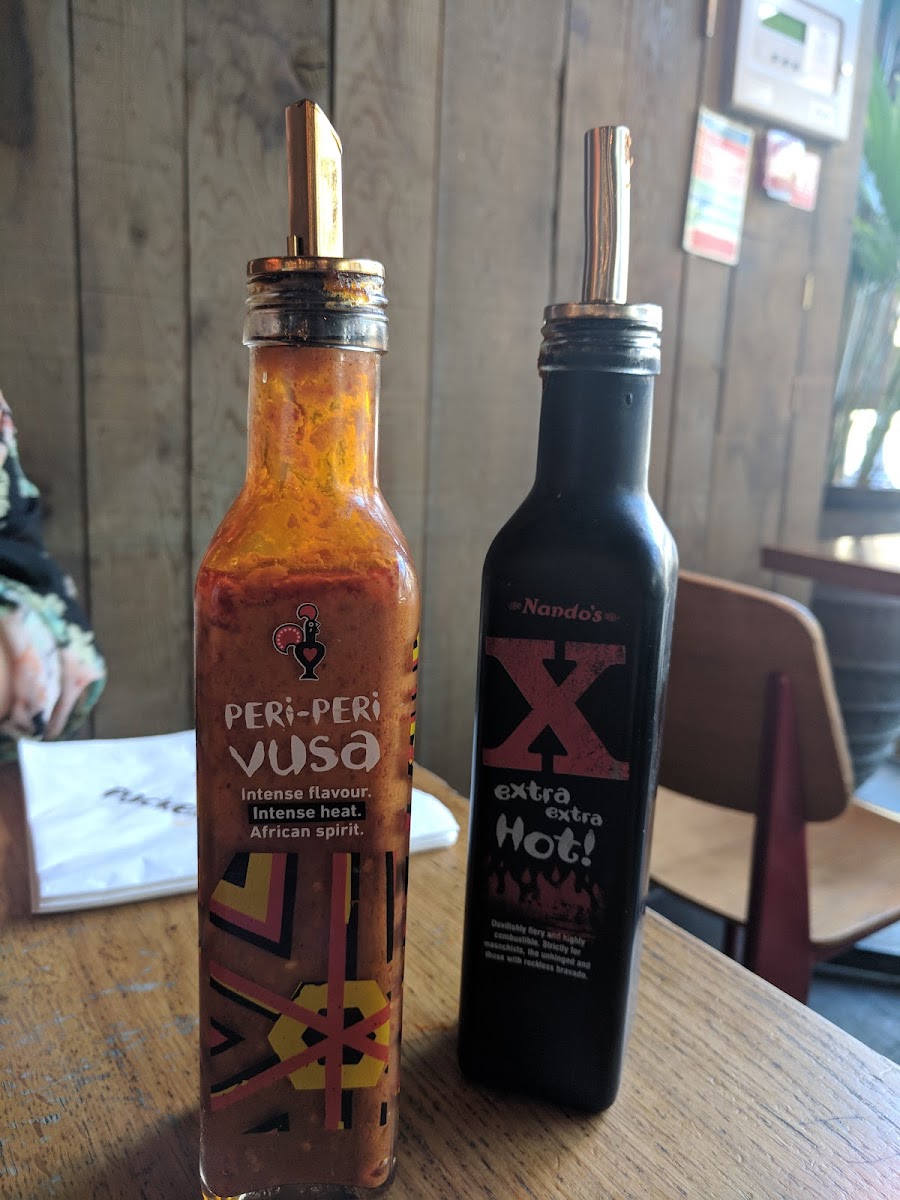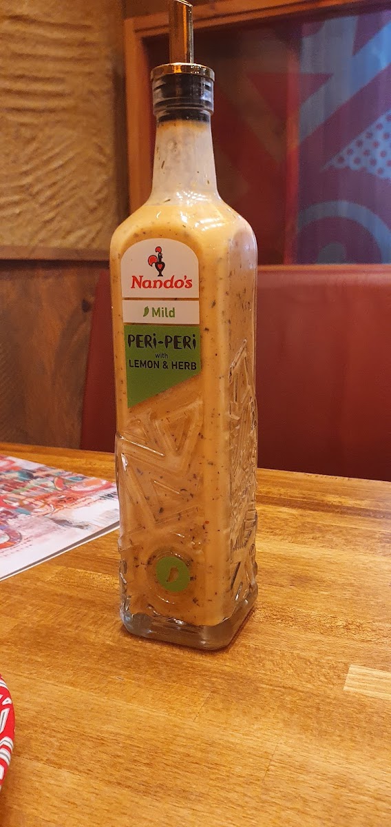 1st time at Nando's, and it was awesome. We had the butterfly chicken with lots of different sauces but the one I liked the most was the lemon herb one. It was so good and tangy.